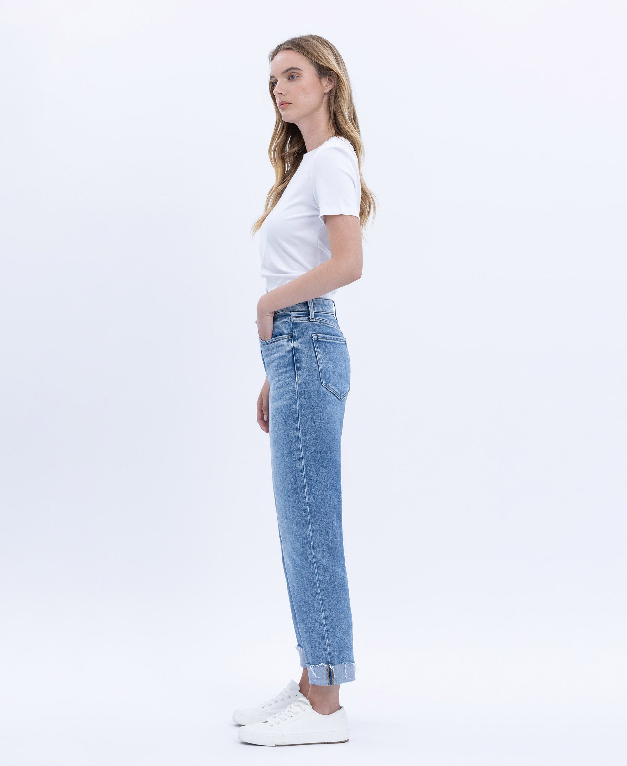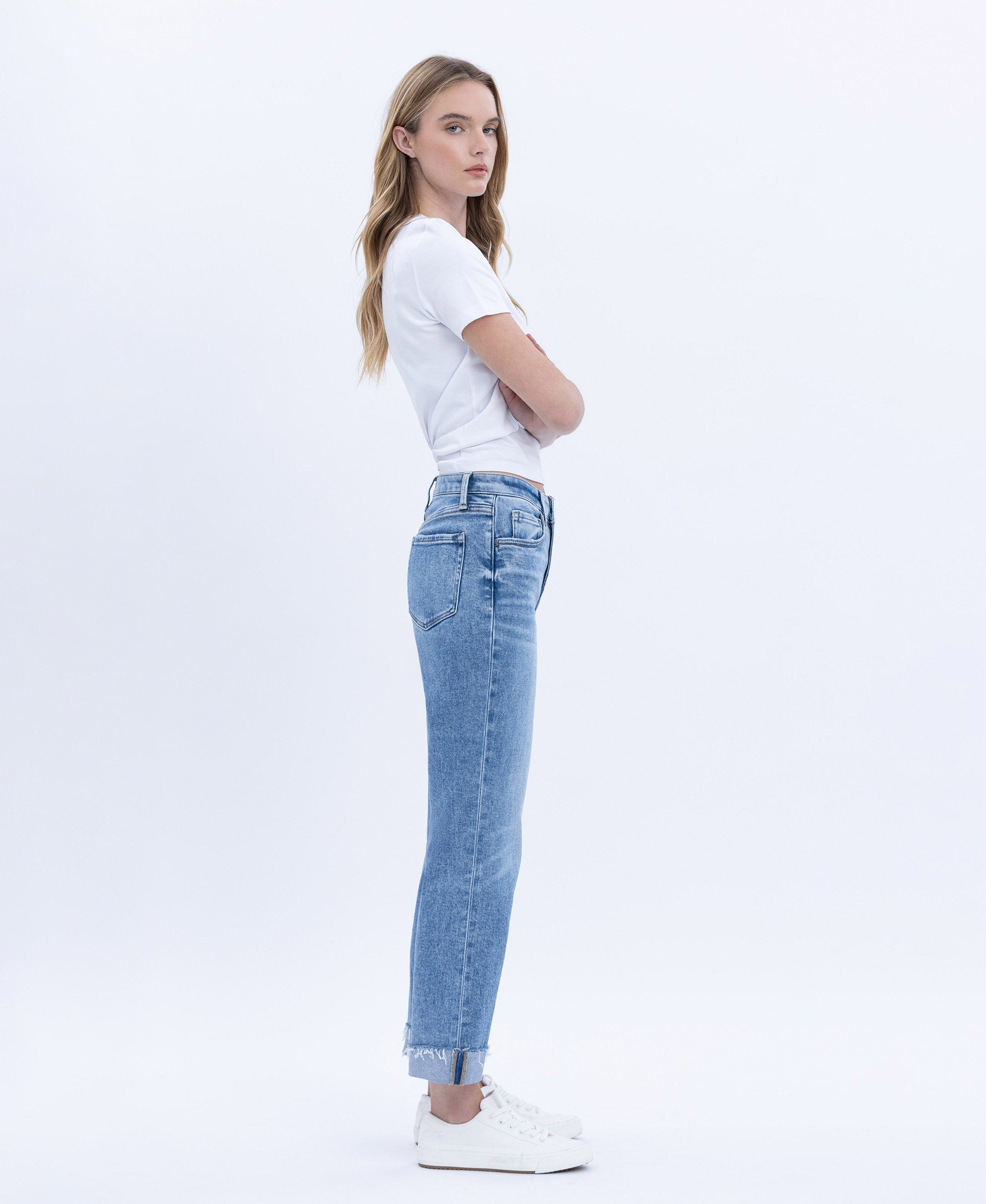 Discover luxury and comfort with Delectable’s High Rise Single Cuff Crop Straight Jeans. Crafted from comfort stretch denim. these jeans effortlessly hug your figure and flatter your curves.