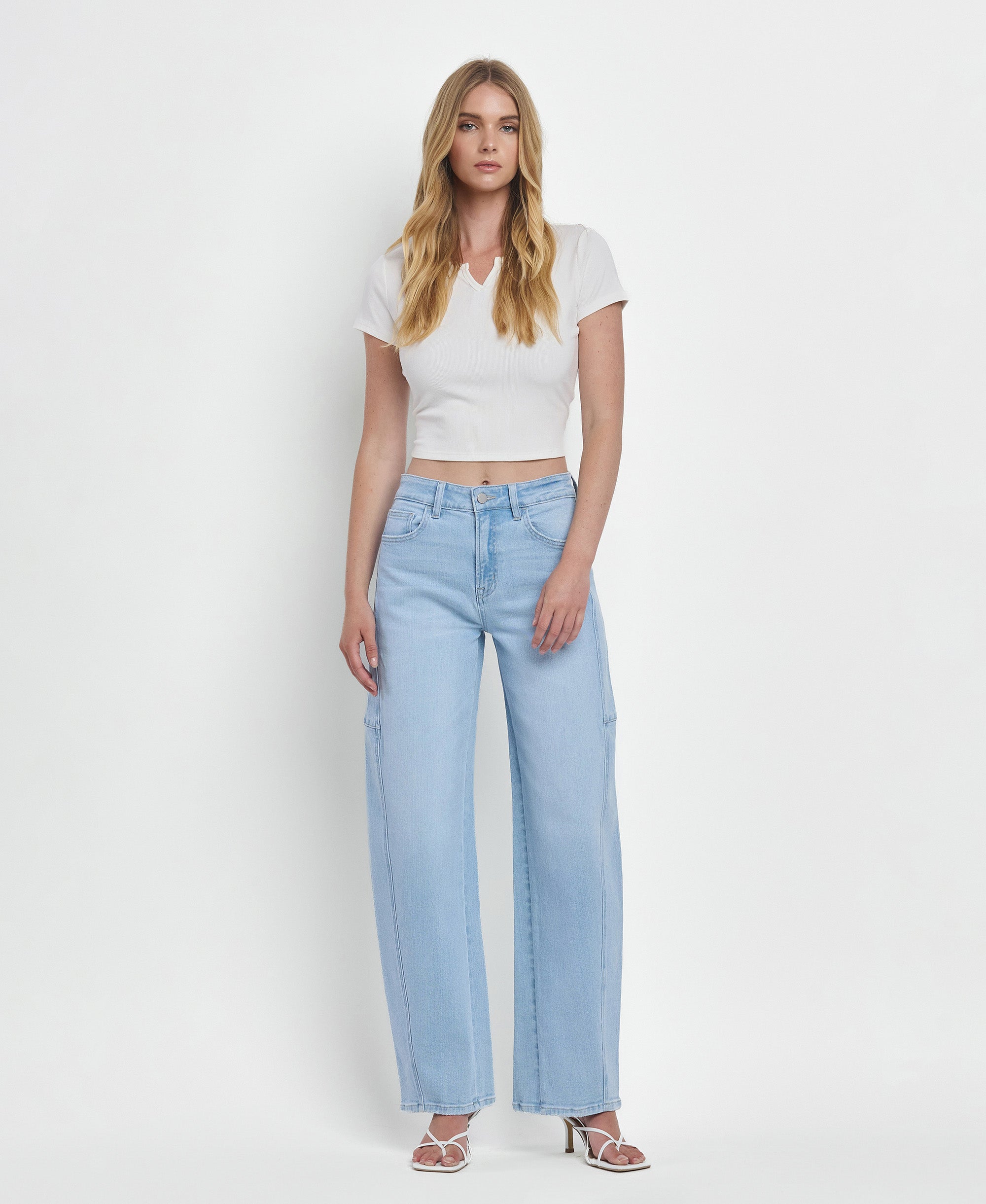 A must have for fashion enthusiasts. these Exhibition jeans feature a super high rise waist and comfort stretch denim to ensure a figure-flattering fit. Seam detailing adds a touch of sophistication. while the finished hem and full length create a streamlined silhouette.?