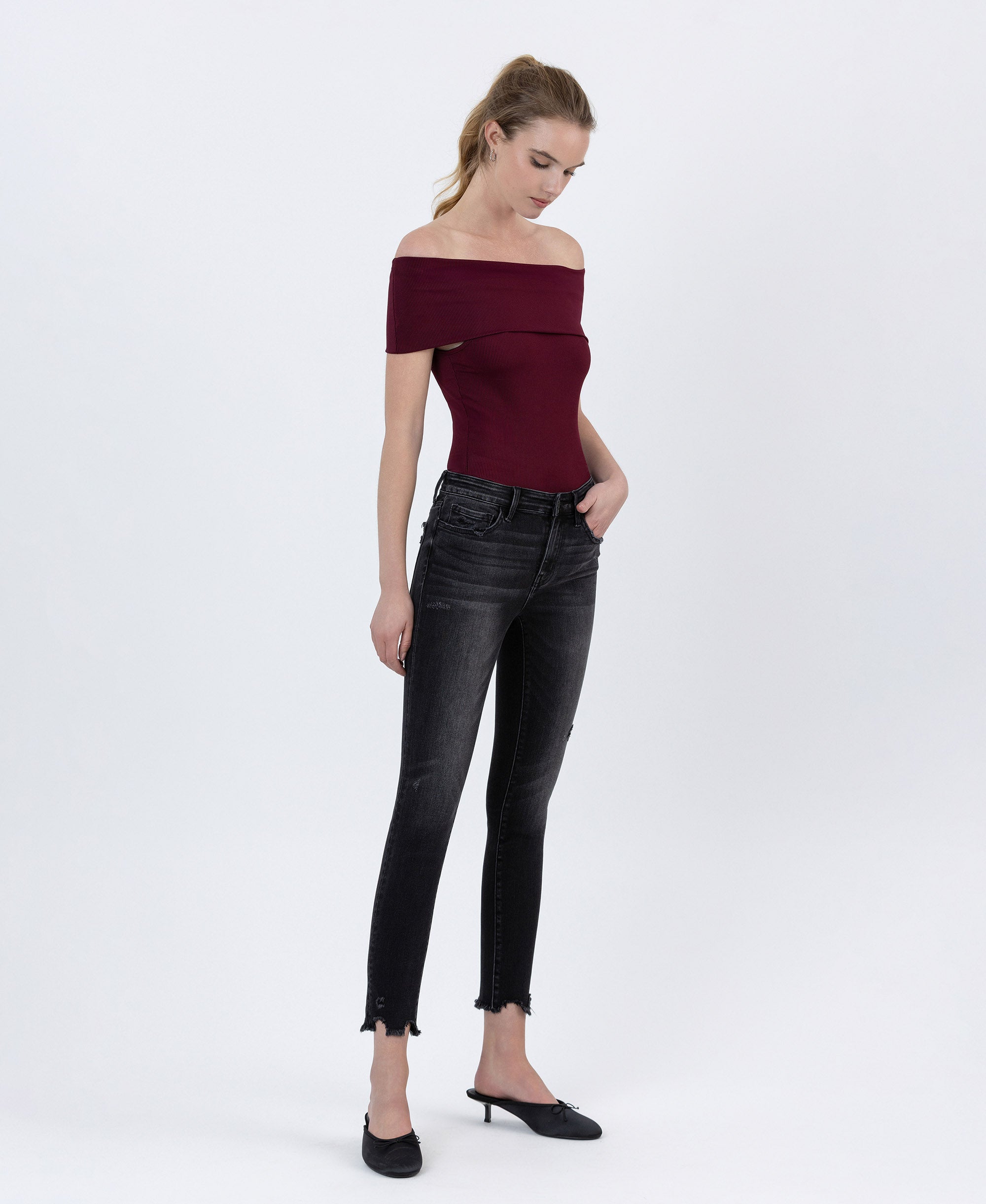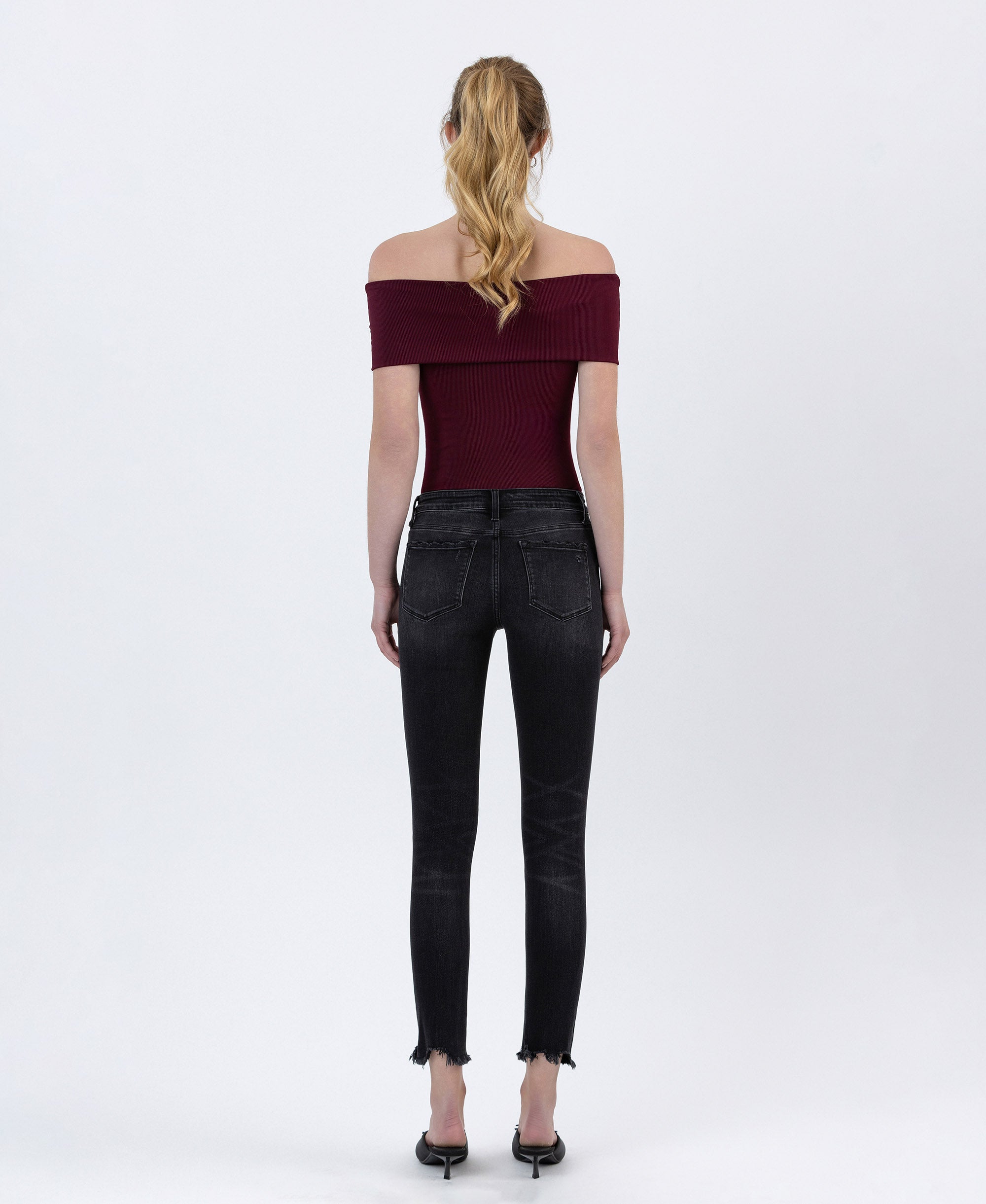 Noteworthy – Mid Rise Crop Distressed Hem Skinny Jeans