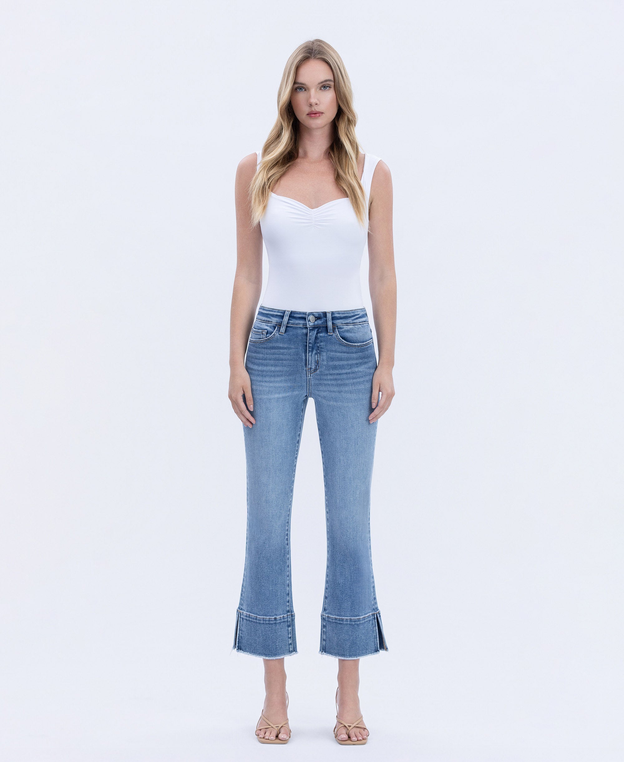 Urbane – High Rise Trouser Slit Hem Kick Flare Jeans