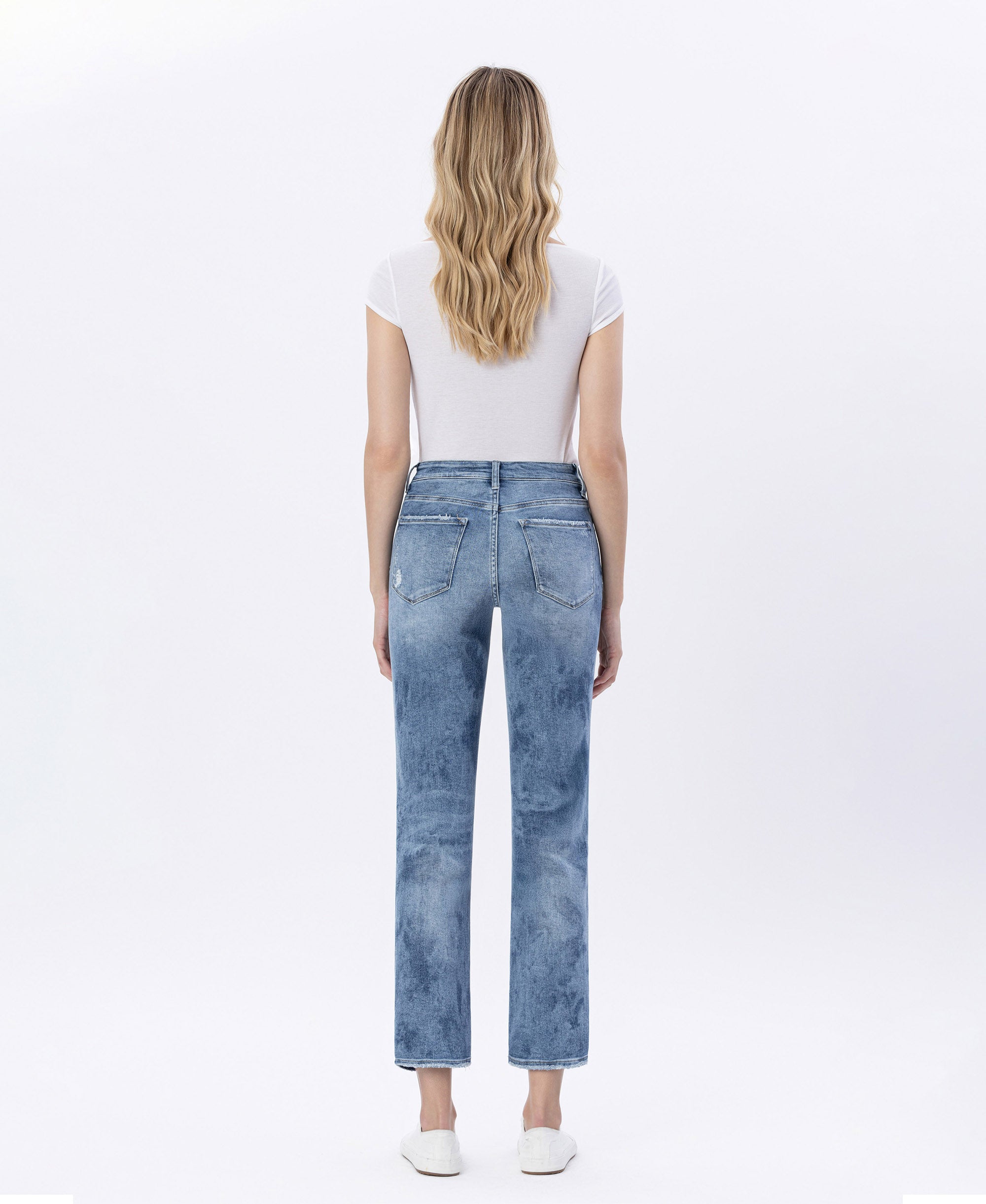 Achieve an effortlessly chic look with our West Side High Rise Crop Straight Jeans. Made from comfort stretch denim. these jeans provide a comfortable and flattering fit. The high rise waist cinches and elongates the silhouette while the distressed details and cropped length add a touch of edginess.?